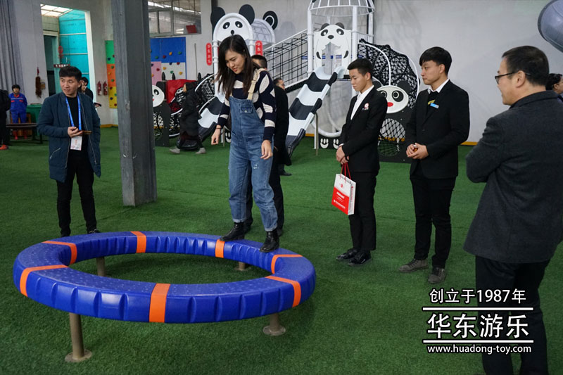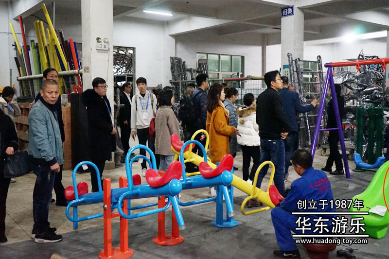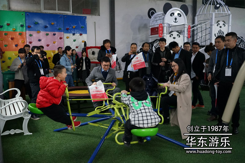 参观人员体验乐鱼leyu游乐生产的手动转椅