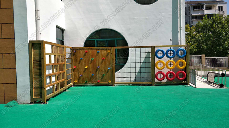 • 该案例根据幼儿园的实际场地进行规划的游乐场,以小朋友的艾攀、爱爬、爱钻等天性,该项目设置了爬网、木制滑梯、攀爬墙等游乐设备,整个项目设计美观,实用性强深受当地小朋友的喜爱。