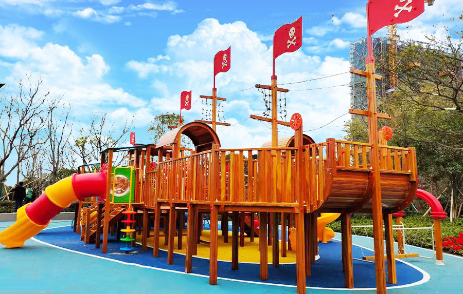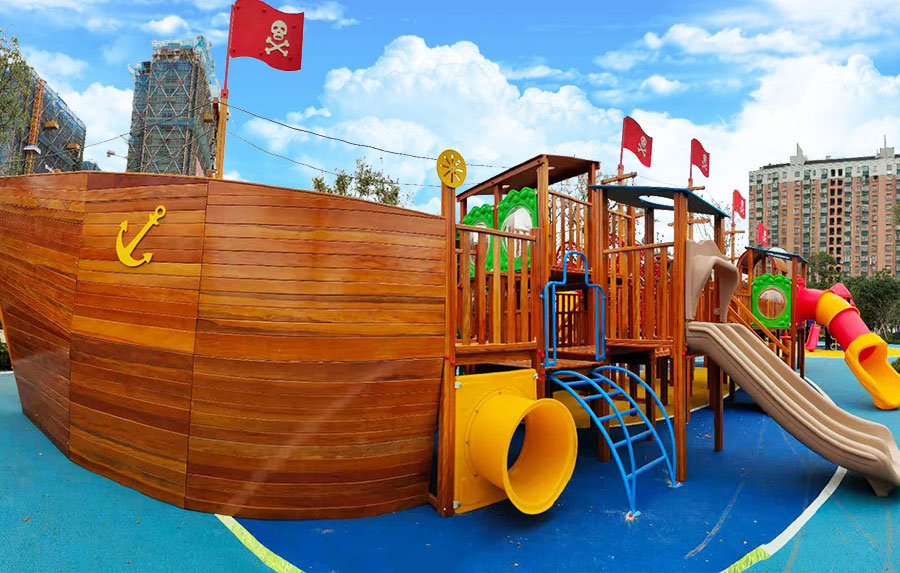 非标木制滑梯组合案例采用海盗船的设计主体为原型设计,增加了大型滑梯组合以及攀爬、钻洞等功能,整个主体设备采用木制结构,乐鱼leyu游乐生产的木制游乐设备具有颜色艳丽、外观漂亮,实用性强、经久耐用、安全性能好等特点,为小朋友的玩耍提供了一个很好的场所。