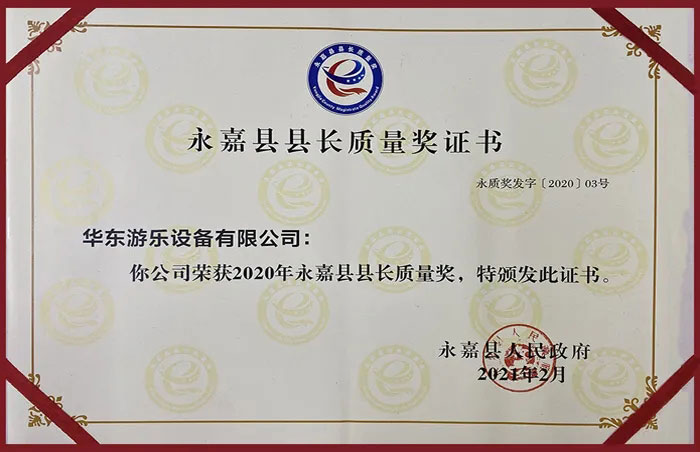 2020年,对广大企业来说注定是困难的一年,作为游乐设备行业的先锋企业,乐鱼leyu游乐紧紧围绕永嘉县总体经济发展为目标任务,主动适应经济发展新常态,积极应对2020年疫情期间的“复工复产”等工作,取得了显著成绩,被永嘉县人民政府评为“2020年度巨龙企业”和“县长质量奖”的荣誉。
