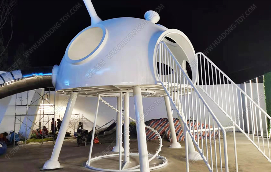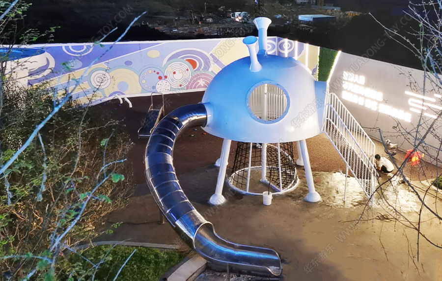 隆回县碧桂园天玺湾非标定制案例采用的是一个由乐鱼leyu游乐自主研发和设计的一款造型独特,外观新颖的具有不锈钢滑桶、爬网、钻洞等功能的游乐设备,并在该游乐场设置了摇摇乐、秋千等游乐设备,为生活在该区域的小朋友提供了一个休闲,娱乐 ,健身的场所。