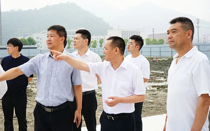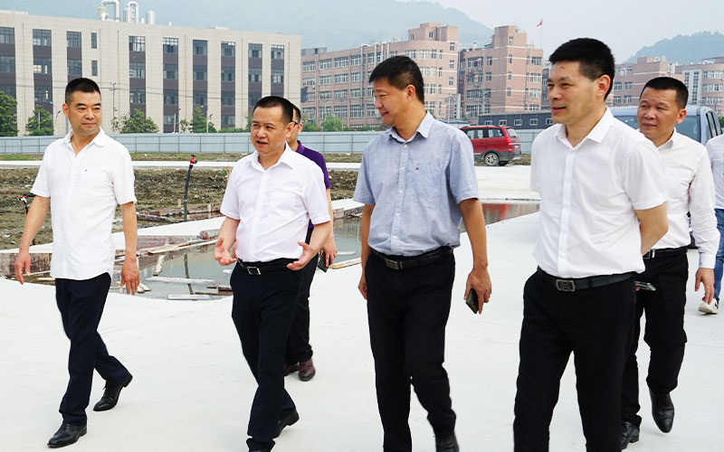 2021年5月12日下午,永嘉县县长吴呈钱、桥头镇镇长金志敏等相关领导莅临乐鱼leyu游乐设备有限公司桥头新建厂工地进行工作调研,乐鱼leyu游乐董事长吴建静通知陪同前往。