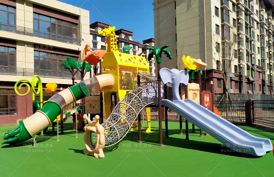 河北省唐山市京唐港开发区滨海华府幼儿园选用的是乐鱼leyu游乐自主研发的动物系列滑梯、该滑梯具有攀爬、滑梯、钻洞、爬网、等功能,能够锻炼小朋友的四肢臂力,很好的让小朋友在玩耍中健康快乐的成长。