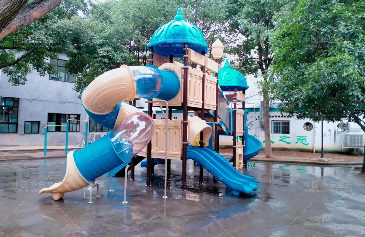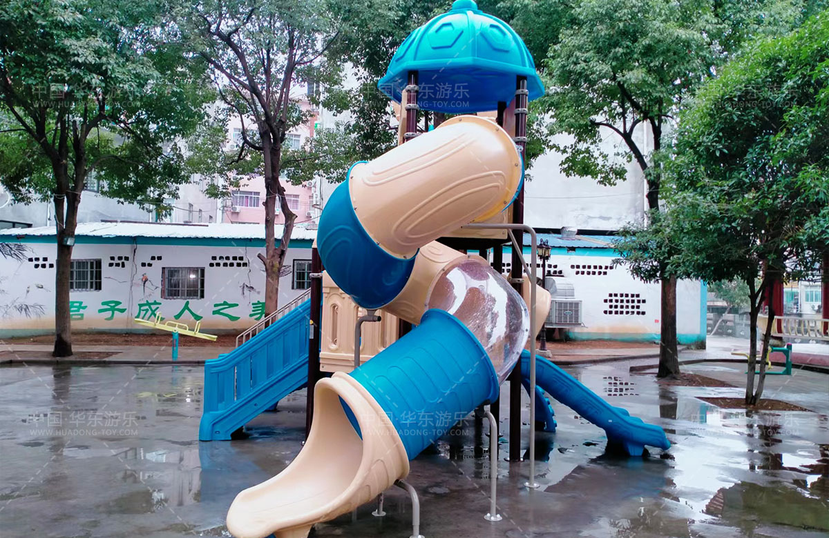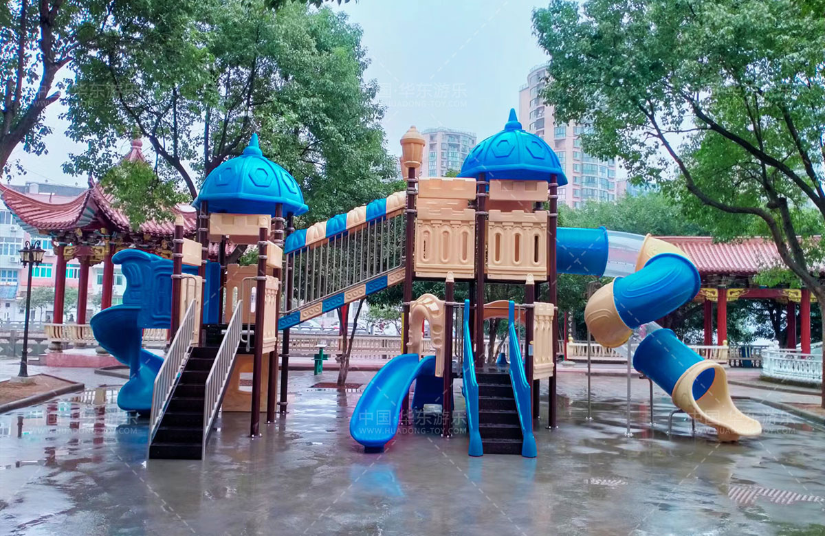 乐清市虹桥镇邬家桥村公园选用的是乐鱼leyu游乐自主设计和研发的别墅屋系列滑梯,该滑梯具有 S型滑梯、旋转滑梯、走梯、攀爬墙、钻洞等功能为一体的游乐器械,是一款使用寿命长、安全环保的游乐设备。