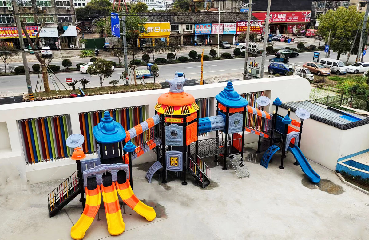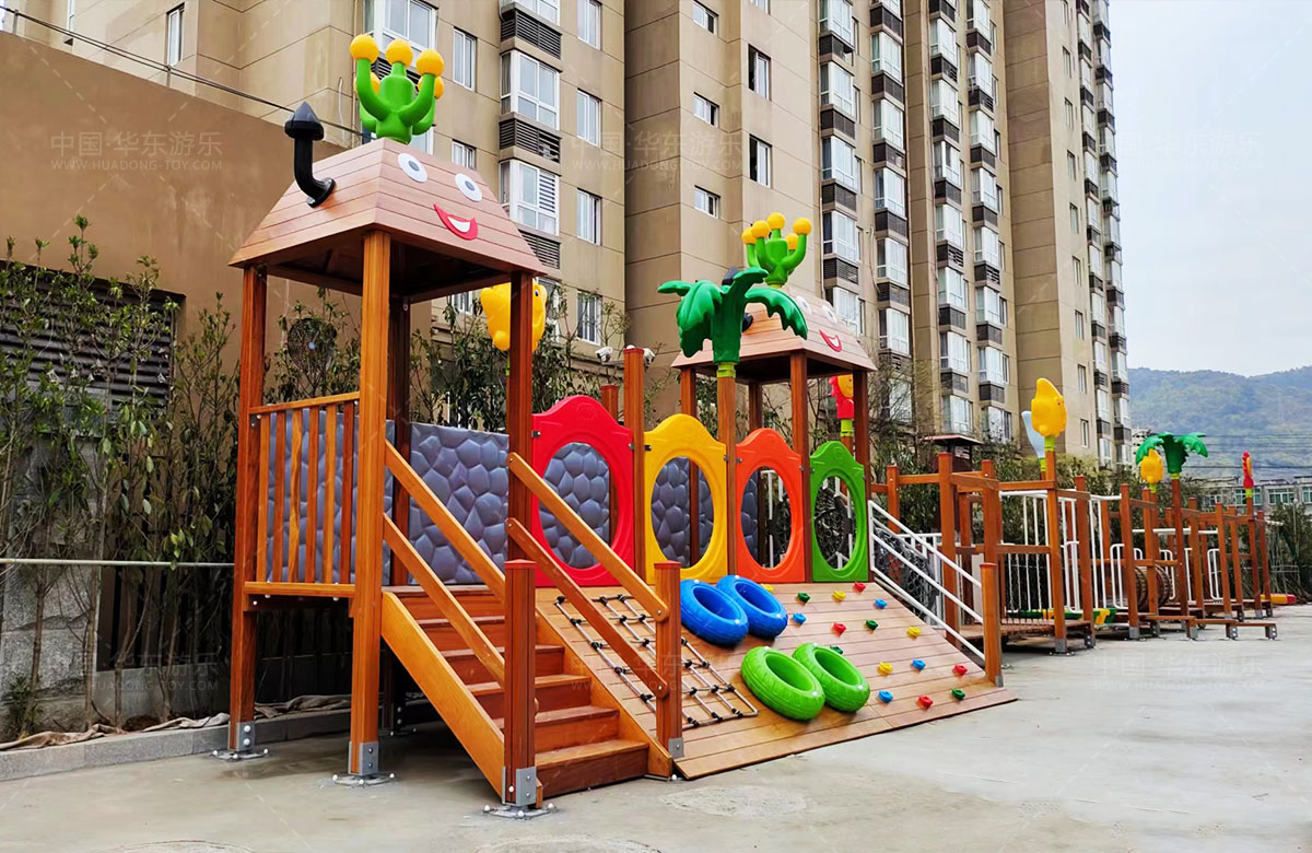 幼儿园为了更好的应对教学的和孩子们的发展需要,分别设置了由乐鱼leyu游乐自助研发和设计的赛亚号系列组合滑梯、木质攀爬、木质拓展游乐设备,让小朋友在学习的同时能够更加愉快的玩耍。