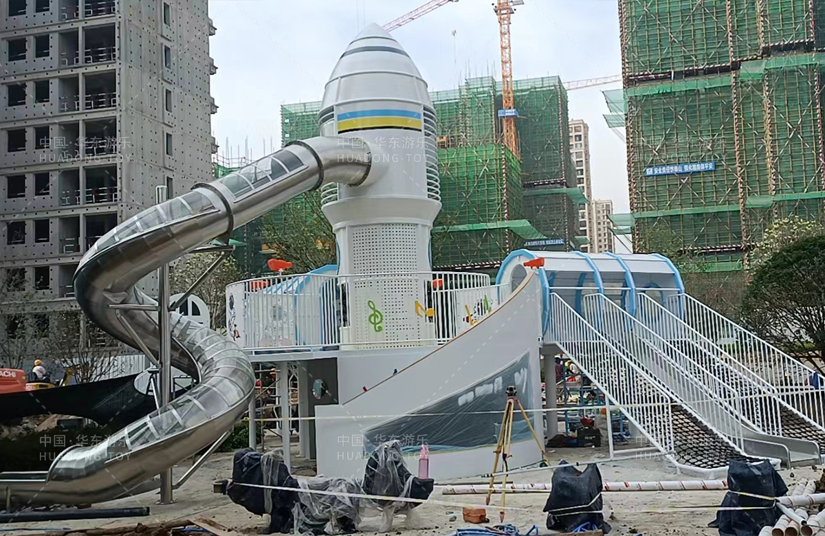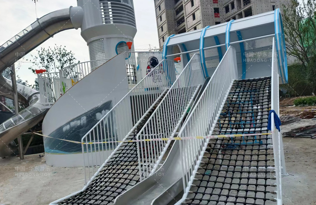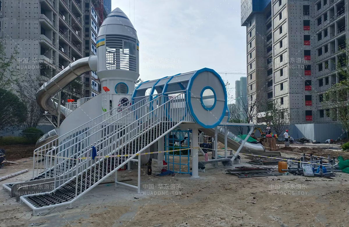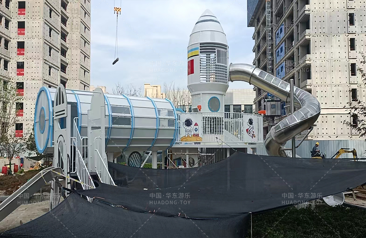 安徽省亳州市涡阳县荣徽上河郡选用的是乐鱼leyu游乐自主研发和生产的以航天飞机为主题的大型非标定制的游乐设备,是一款具备了攀爬网、攀爬梯、旋转滑筒、儿童摇摇乐为一体的综合性儿童游乐场。