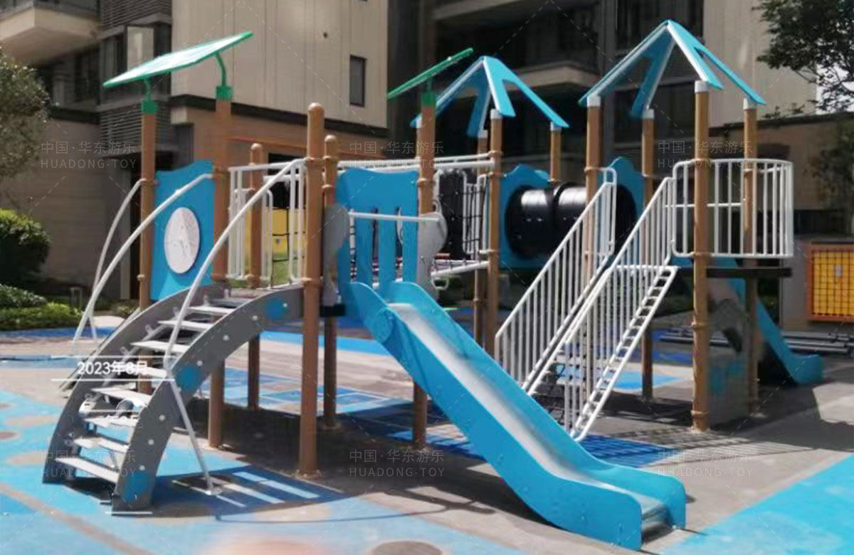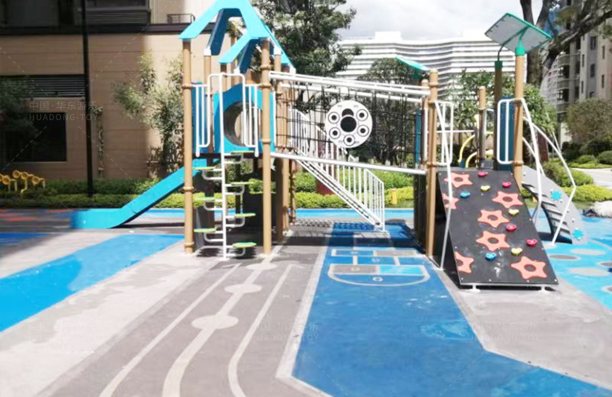 该项目选用的是乐鱼leyu游乐自主研发和设计的PE板系列组合滑梯,该滑梯是一款具备了攀爬墙、攀爬网、攀爬梯、空中网桥、不锈钢滑梯等功能为一体的综合性游乐设备,除此之外还设置了小朋友喜欢的传声筒、攀爬墙、翻翻乐和成年健身器等设备,不仅丰富人们的休闲生活,也为该小区增加了更多的生机与活力。