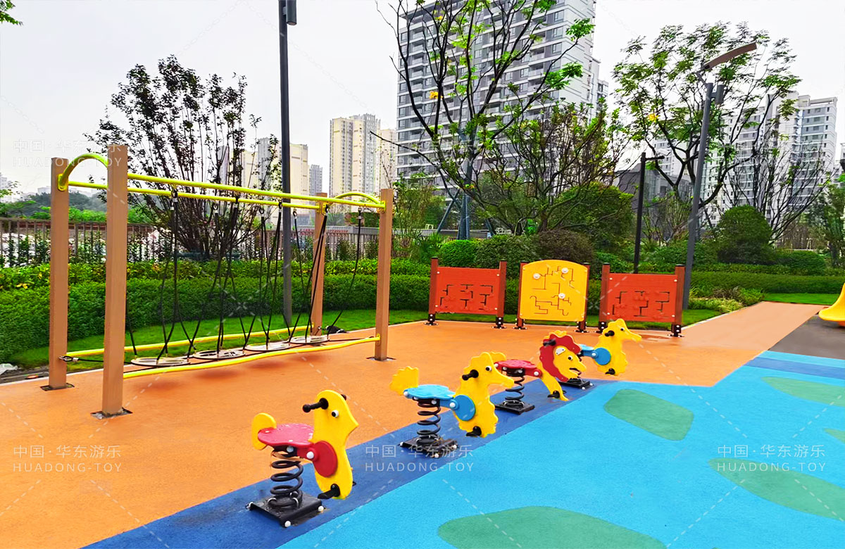 四川省成都市新城林屿溪选用的是乐鱼leyu游乐自主研发和设计的非标定制系列的游乐设备,为了更多让小朋友们有一个玩耍的场地,整个游乐场分别设计了儿童摇摇乐、儿童秋千、成人健身器、趣味迷宫、平衡吊桥、旋转椅、象鼻组合滑梯等游乐设备。