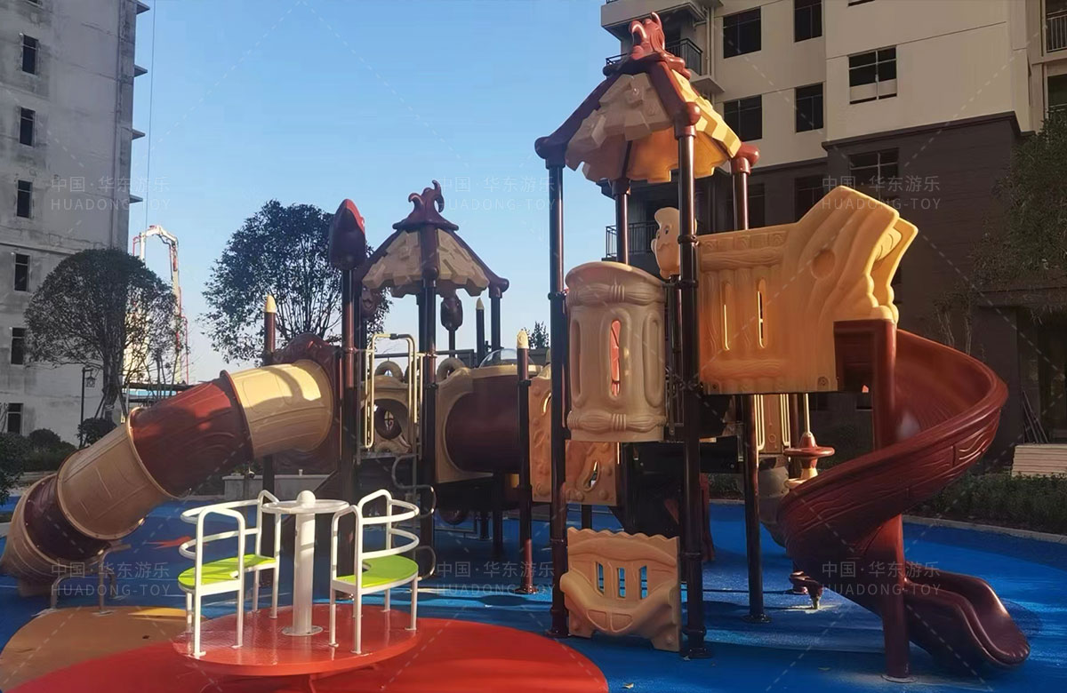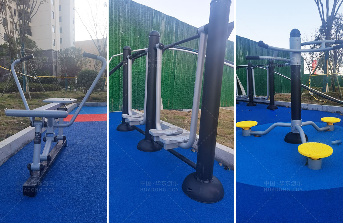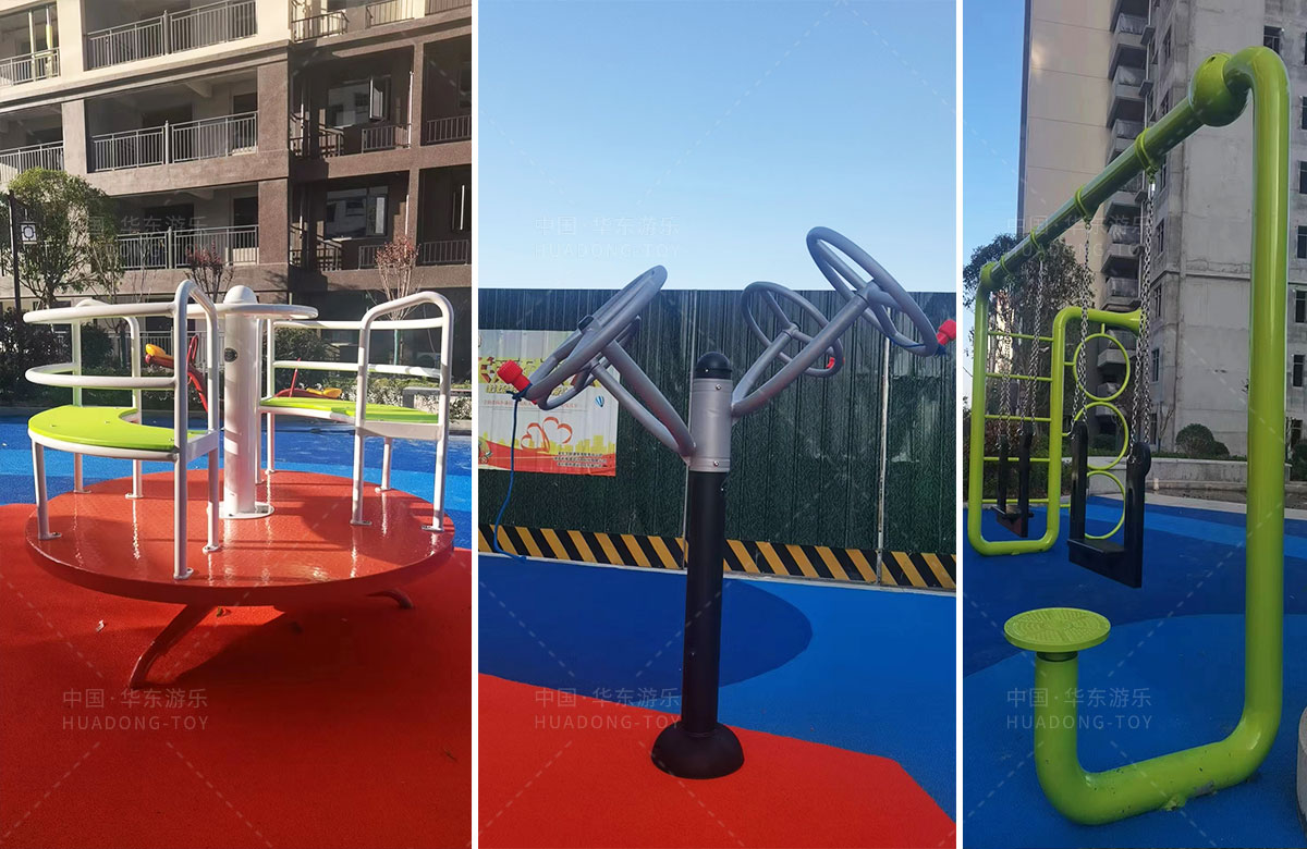 湖北黄冈市浠水县星河荟小区选用的是乐鱼leyu游乐自主研发和设计的魔法屋系列组合滑梯,同时为了更好的满足全龄人群的健身和需求还配备了漫步机、太极手推器、吊环等户外健身器,不仅仅满足了孩子们的游玩需求,也为当地的人提供了一下休息、娱乐、健身、遛娃的场所。