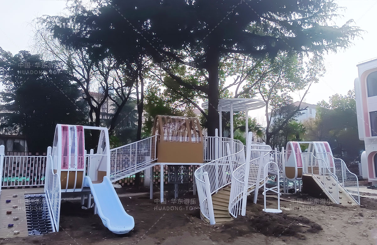 虹口区实验幼儿园简介创建于1993年9月。1994年定为一级一类幼儿园。儿园具有现代化的设施和美丽童趣的园舍。总占地面积4800多平方米。建设面积3000多㎡。绿化面积1800多㎡。 此次幼儿园游乐项目选择的是乐鱼leyu游乐自主研发和设计的一款综合性木质系列非标定制产品,不仅功能齐全,主体性也非常的适合幼儿园的场景设置。