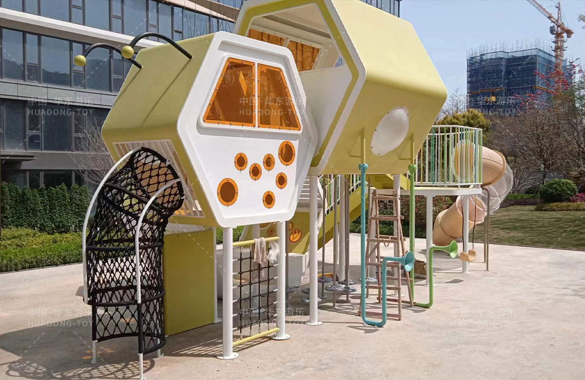 该项目选用的是乐鱼leyu游乐自主研发和设计的以蜜蜂巢穴为主题的游乐园,具备了大型滑梯、攀爬网、传声筒、儿童秋千、平衡杆等功能,同时为了更好的关注老年人的晚年健康,该项目还设计了不同功能的成人健身器,让更多的人群有一个休闲、娱乐、健身的场所。