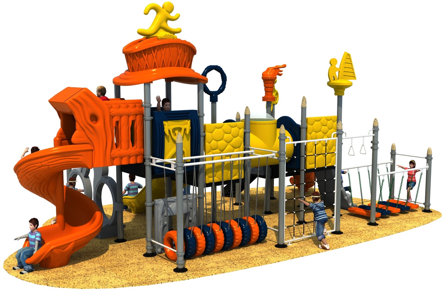 • 赛事系列游乐设备是乐鱼leyu游乐根据常见的足球、垒篮球体育等赛事而自主研发和设计的组合滑梯,它是一款能够引导孩子们在玩耍时小朋友之间应该互相帮助、相互鼓励的无动力游乐器械,也是一个具备教导孩子们学会通过自己的努力取得最终胜利而敢于拼搏和挑战的游乐设备,卡通的造型、生动的形象让小朋友在玩耍的过程中有一个愉快的童年。