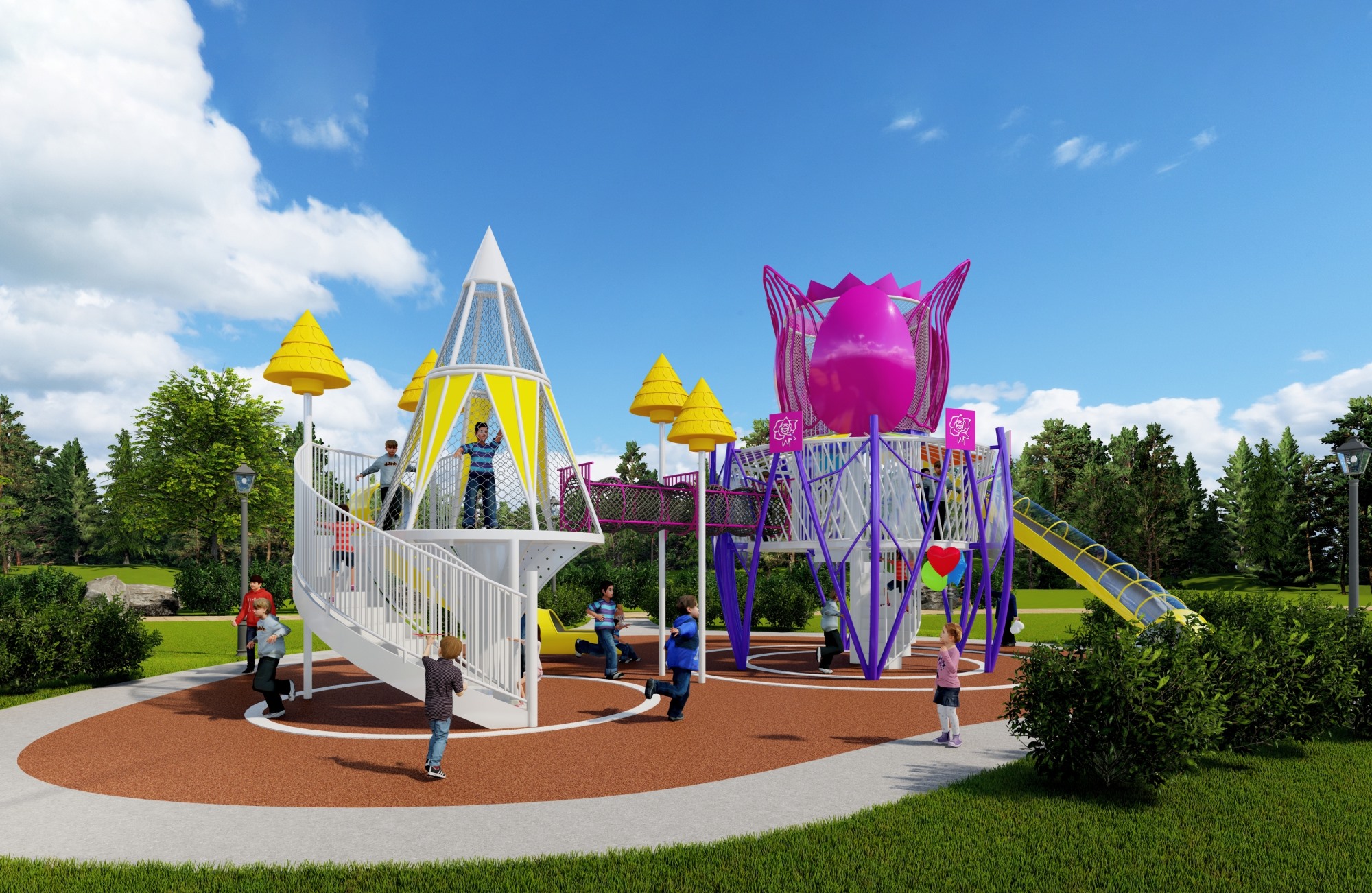 • 主题景观系列的设计灵感来源于各个主题景观,通过主题的风格化设计,体现出不同的主题风格,让孩子在游外中感受不同的乐趣,同时在游戏中学习到与各个主题相关的主题知识,乐鱼leyu游乐采用标准化的制作工艺和高标准的质量体系,确保孩子在游玩中得到安全的保护!