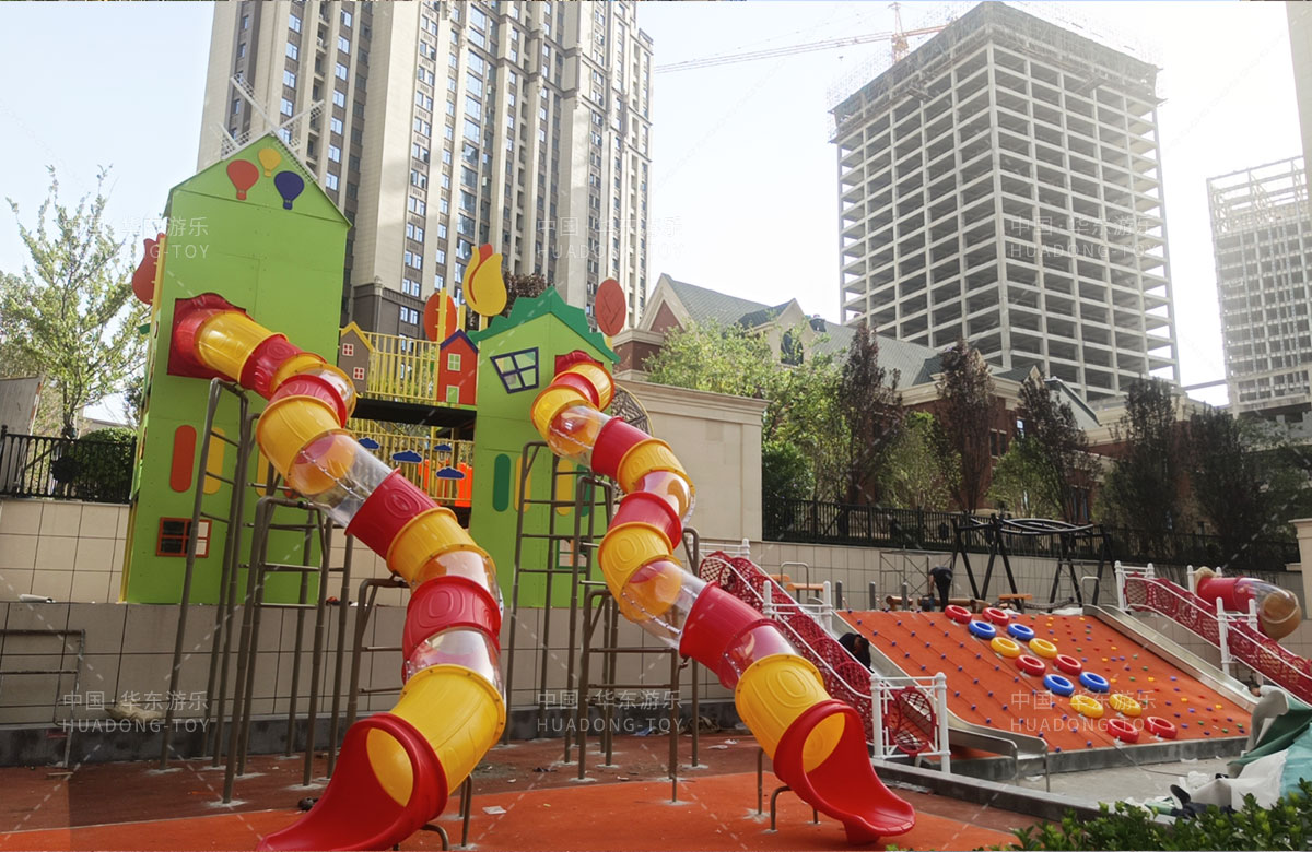 德福房地产骏景御园选用的是乐鱼leyu游乐自主研发和生产的趣味小屋为主题的游乐设备,整个场地分别设置了小朋友喜欢的组合滑梯、旋转座椅、不锈钢滑梯、组合秋千、各种类型的拓展游乐设备,不仅仅丰富了小区的生活,也为孩子们的健康成长提供了保障。
