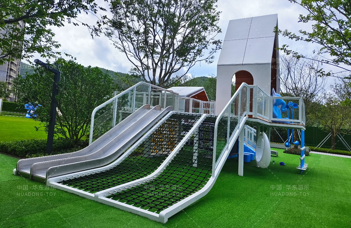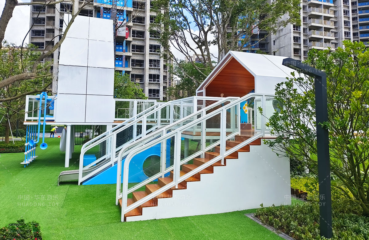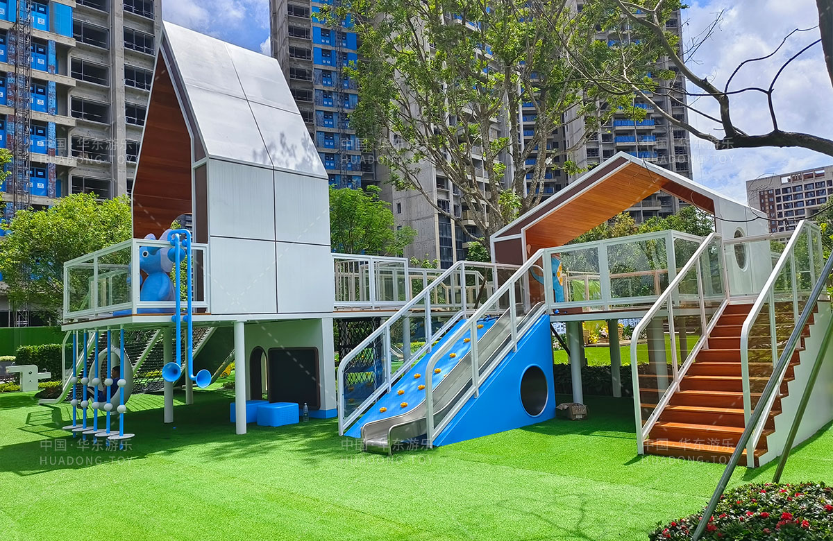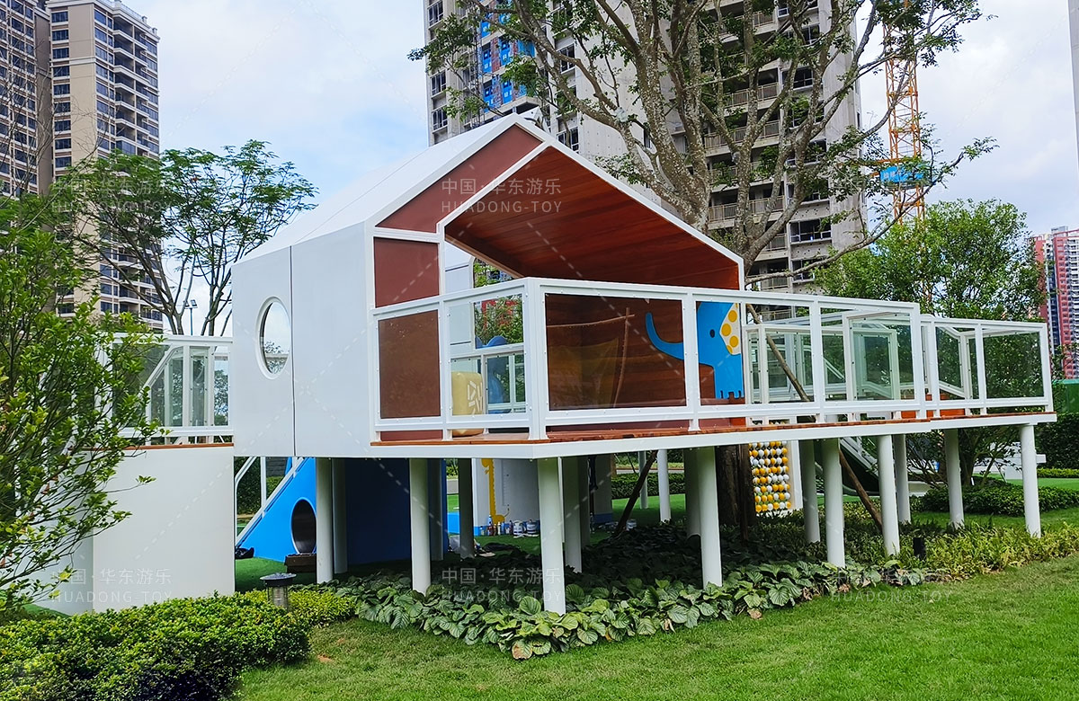 • 广东惠州润溪花园是一个高端的生活小区,为了更好的 服务生活中当地的居民,完善小区的配套设施,该小区选用的一个以小象的田野乐园为主题的游乐园,齐全的功能、艳丽的颜色深受孩子们的喜爱,同时为了更好的为孩子们提供一个休闲娱乐的场所,整个游乐场还设置了小朋友喜欢的儿童摇摇乐、组合秋千、翻翻乐、攀爬网等游乐器械。