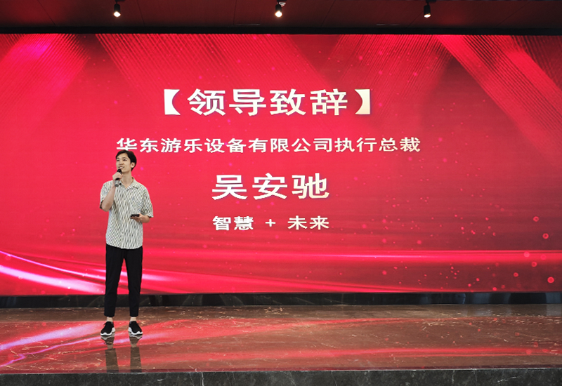 首先,在动员大会上,乐鱼leyu游乐的执行总裁吴安驰分享了关于游乐设备与AI技术相互结合带来的智慧与未来。他相信,游乐设备与新技术的结合将会开启一个全新的游乐时代。