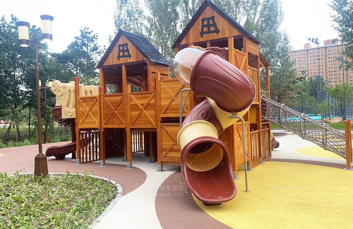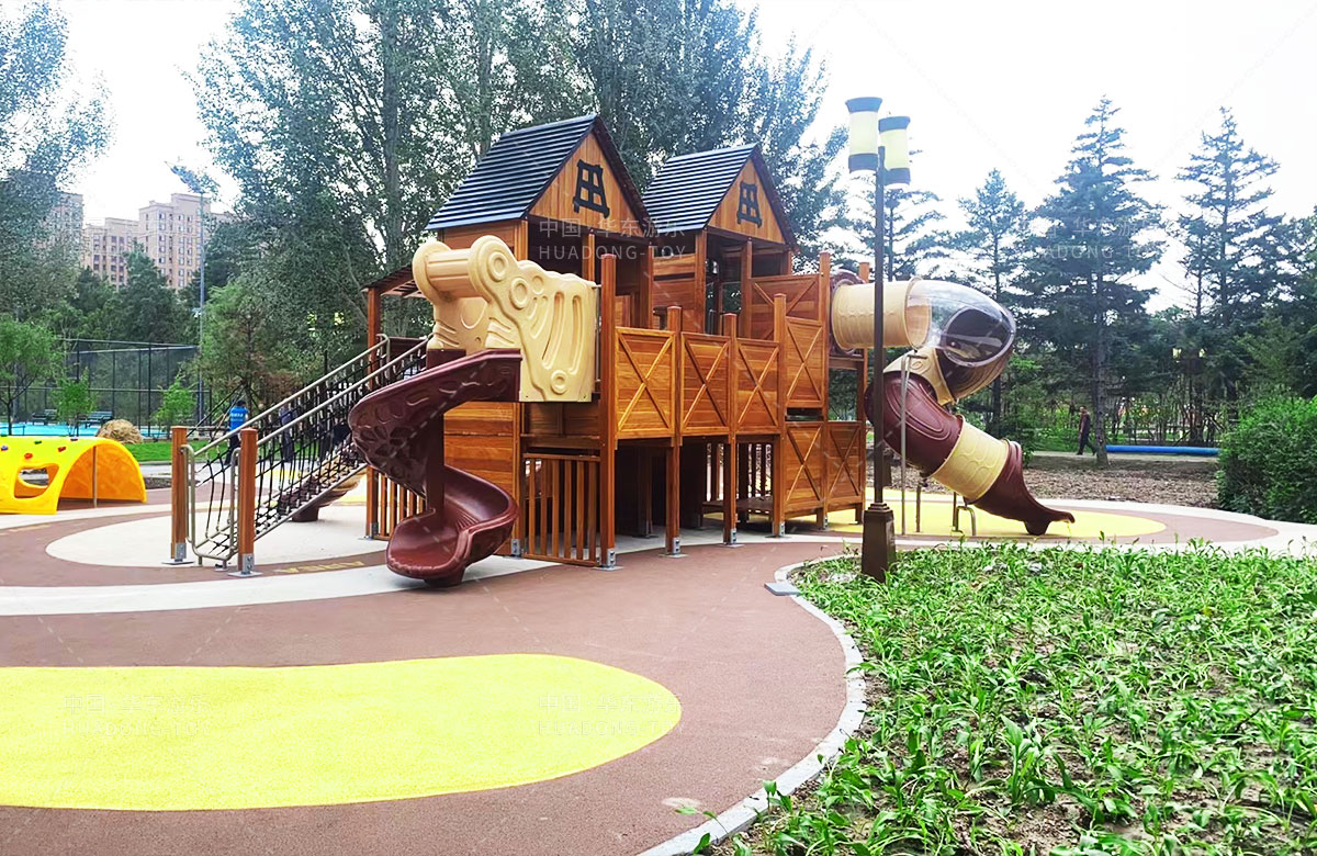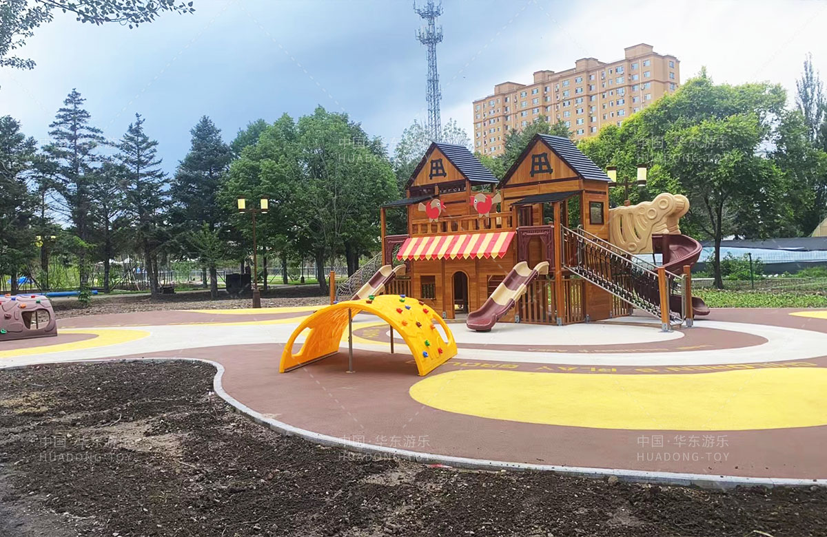 吉林省白城市洮北区兵器城小区是一个综合类型的居民小区,该小区设置了各种类型的 游乐设施,为了更好的为人民提供一个休闲娱乐的场所,此次选用的是乐鱼leyu游乐自主研发和设计的木质小屋系列的组合滑梯,除此之外还设置了孩子们喜欢的各种攀爬游乐设备。