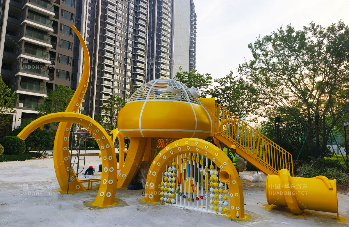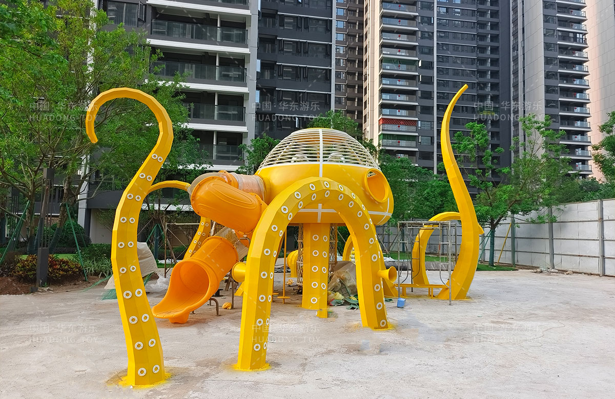 中海地产汕头阅江府选用的是乐鱼leyu游乐自主研发和设计的以章鱼为主题而设计的非标定制的章鱼主题综合游乐园,整个游乐园用一个大型的章鱼设备为主题,设计了集钻洞、攀爬网、滑梯、打击乐器等功能为一体的综合性游乐设备,为生活在当地的人群提供了一个休息娱乐的场所,也为小朋友们的健康成长提供了保障。
