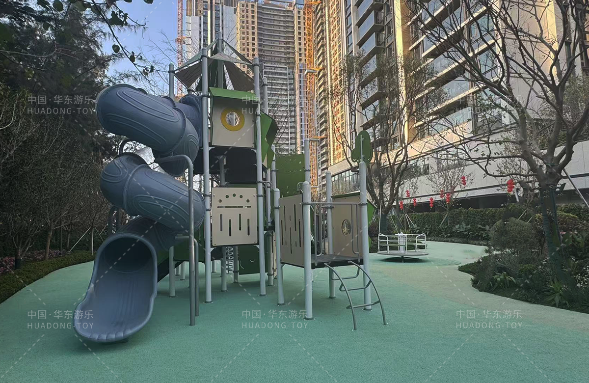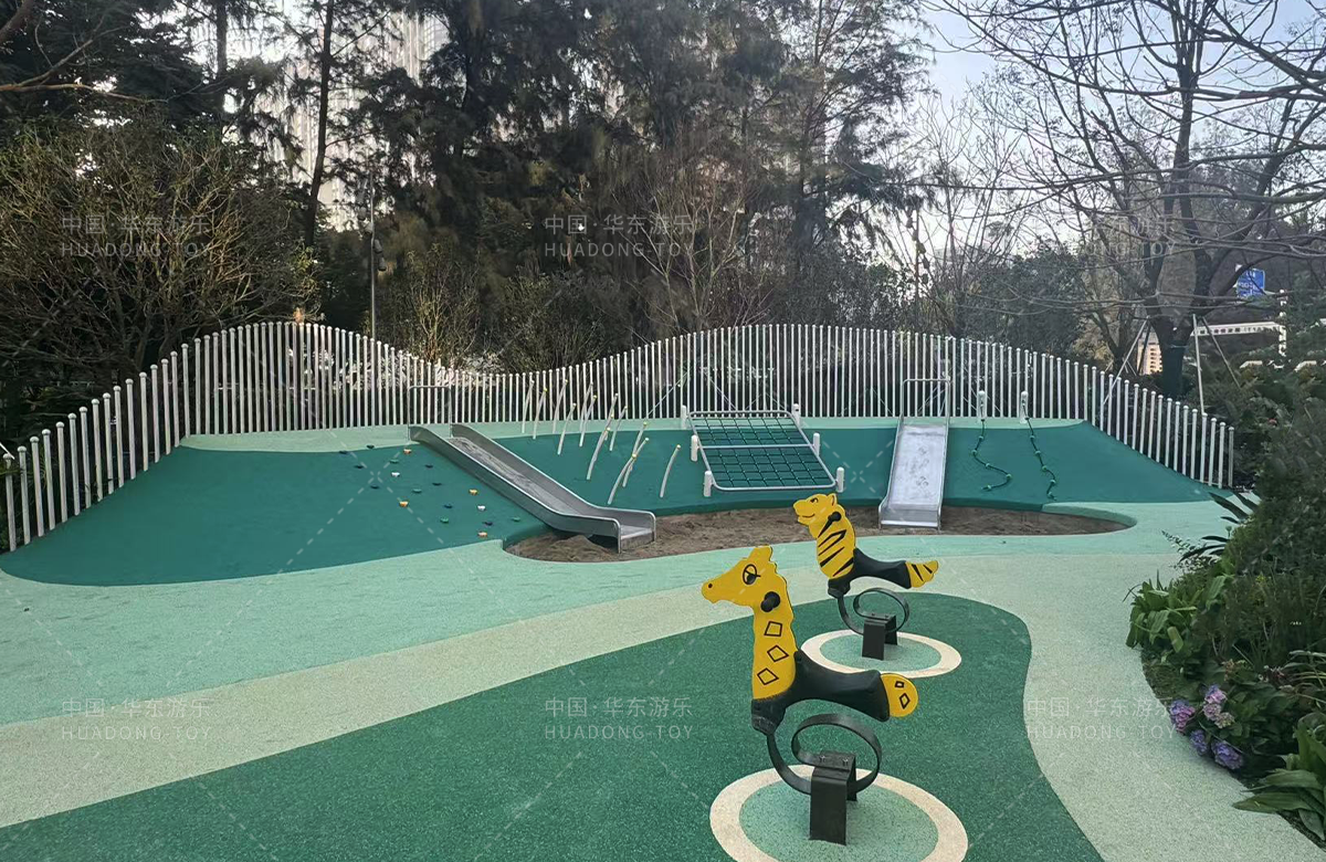 • 为了更好的为生活在该小区的人们提供更好的生活服务,该小区专门修建了一个综合性的游乐园,整个游乐园分别设置了攀爬网、成人健身器、孩童多功能攀爬架、组合滑梯、地形攀爬等功能的游乐设备,不仅仅丰富了小区的生活环境,也为当地的人们提供了休闲、娱乐、健身、遛娃的场所,大大的提高了人们的生活质量和幸福指数。