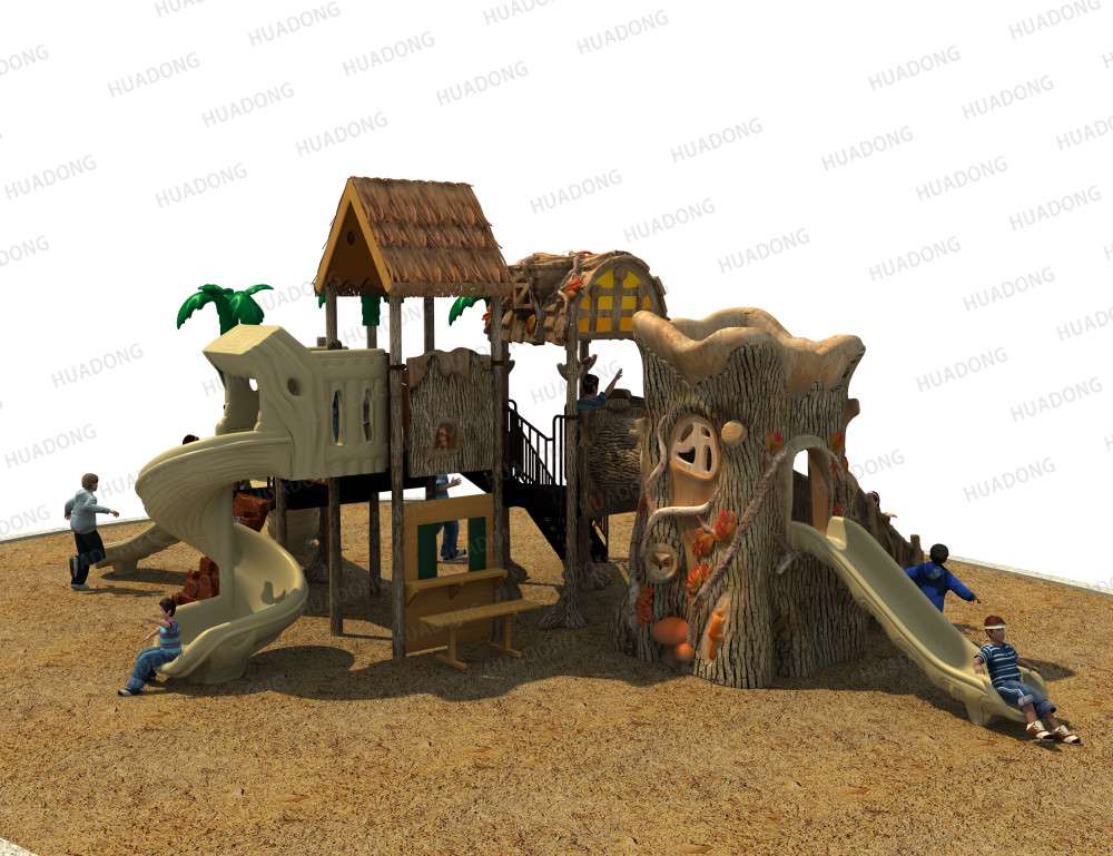• 远古部落系列虽然名字带着“古”字,但是在设计细节处无不透露着艺术与创造性。当孩子在仿真树中探索、冒险、嬉戏游玩时,就像穿越到古老的神秘森林;粗略的树干包围着他们,头顶是高耸的茅草屋,触感真实的枯枝走廊,还有随处可见的小动物们…… 远古部落系列旨在打造区别于其他系列带给孩子们的新鲜感,让孩子们找设计者打造的神秘世界中获得冒险的乐趣。